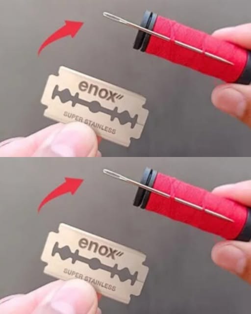 Seamstresses have been hiding this for years! Insert a razor blade into the needle and be amazed. In the world of sewing, one of the most frustrating and tedious tasks is threading a needle, especially when the thread doesn’t seem to cooperate. However, there is a surprisingly simple home trick…