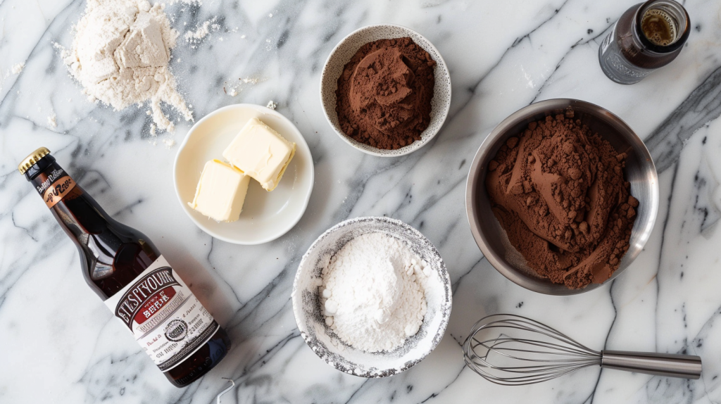 - Gradually add the dry ingredients, alternating with the cooled stout mixture, mixing until just combined.